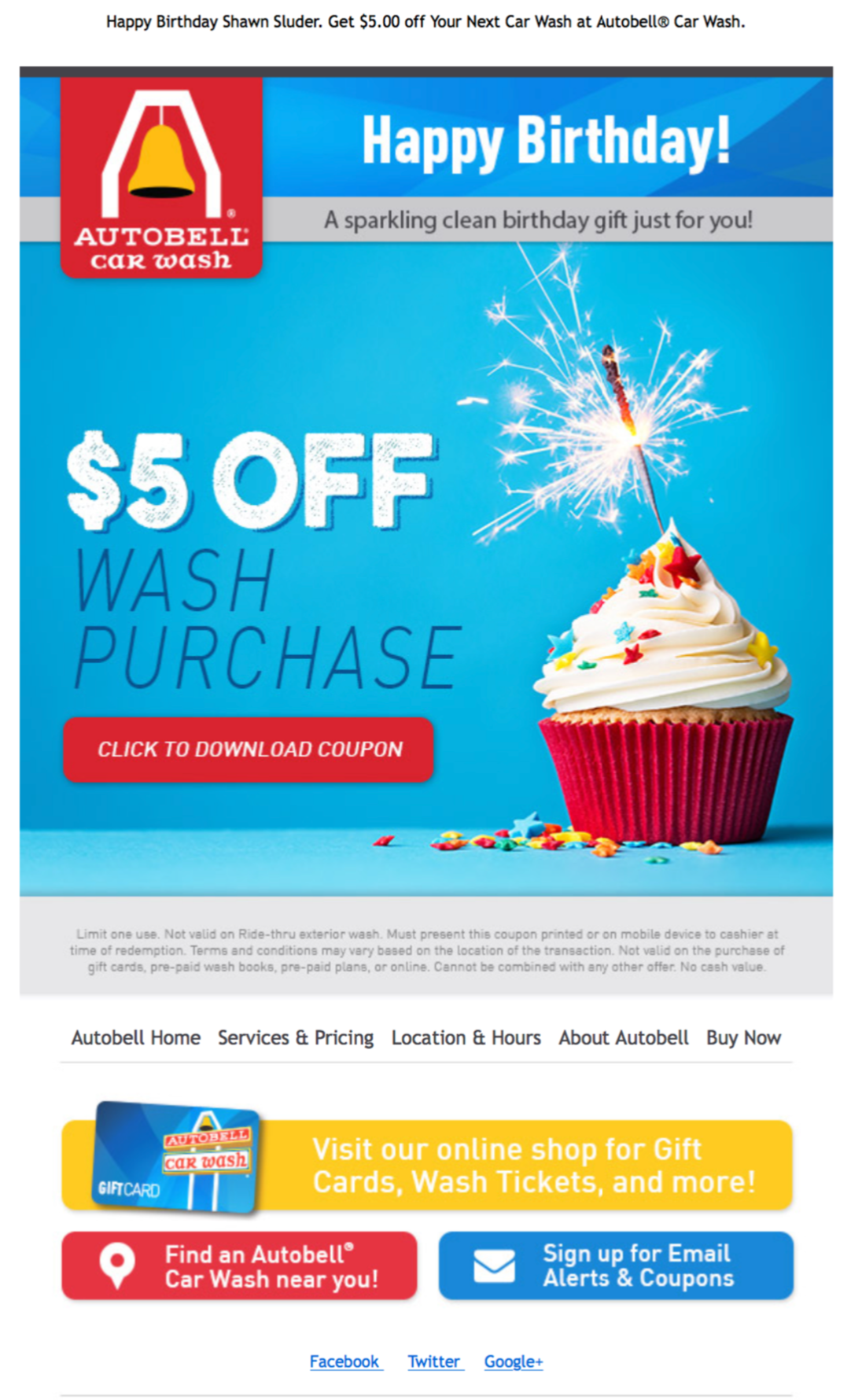 Leveraged the power of the Gmail Promotions tab. Autobell’s primary goal is to drive carwash e-coupon redemptions and e-ticket sales. I incorporated image previews and deal badges into each template to stand out amongst the competition.